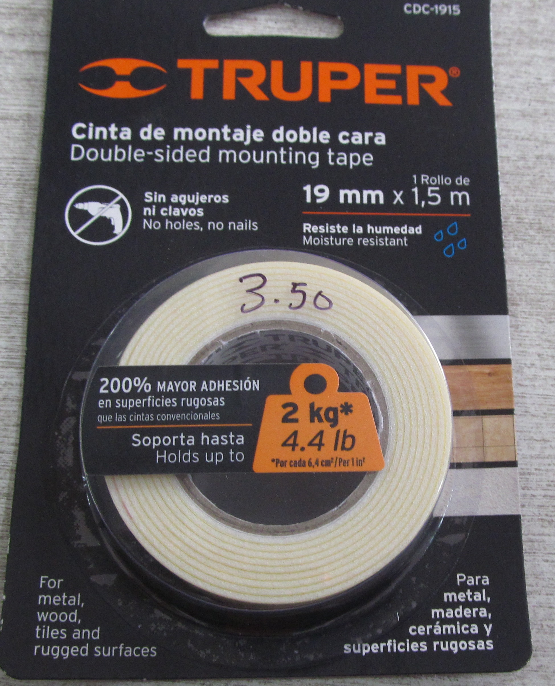 Nombre: CINTA DE MONTAJE-TRUPER-19MM x 1.5M, 11724